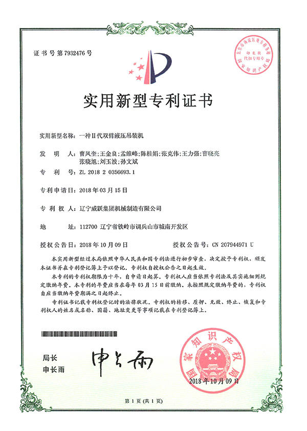• 雙臂液壓吊裝機的工作原理